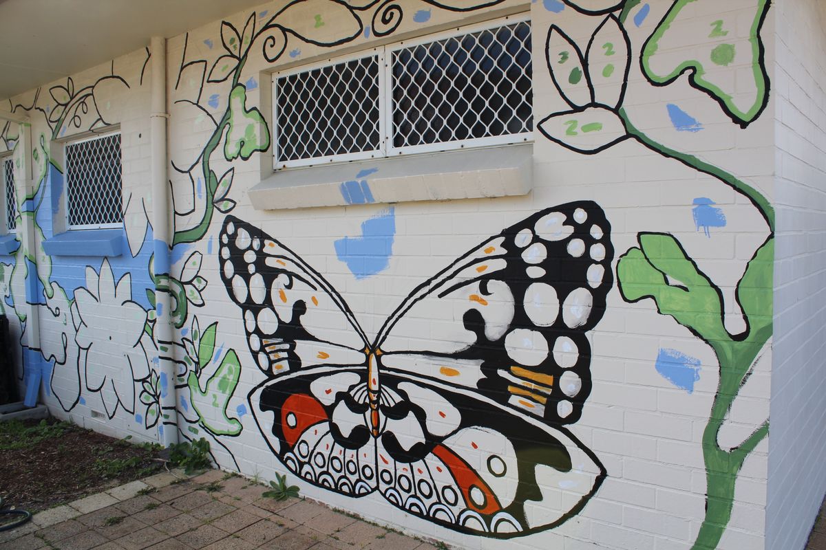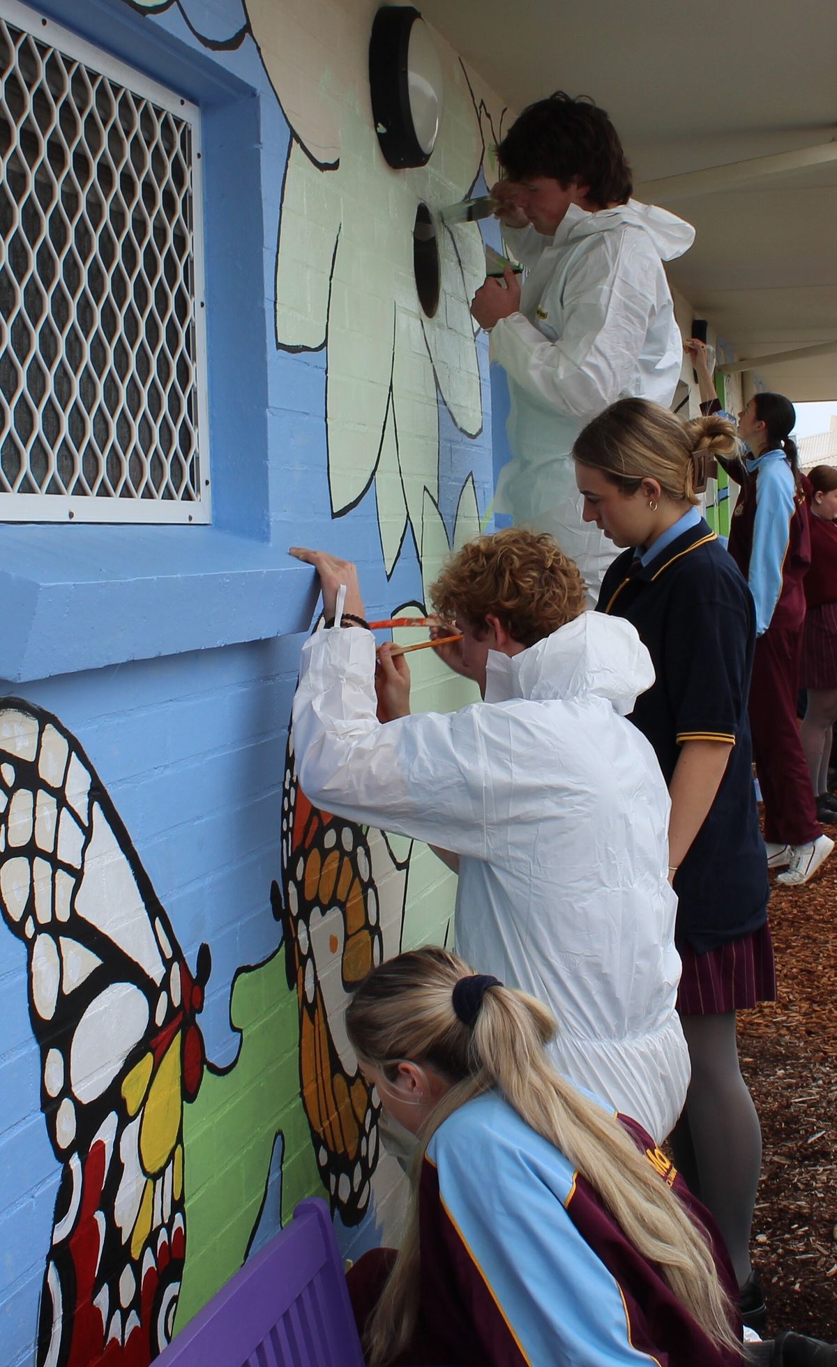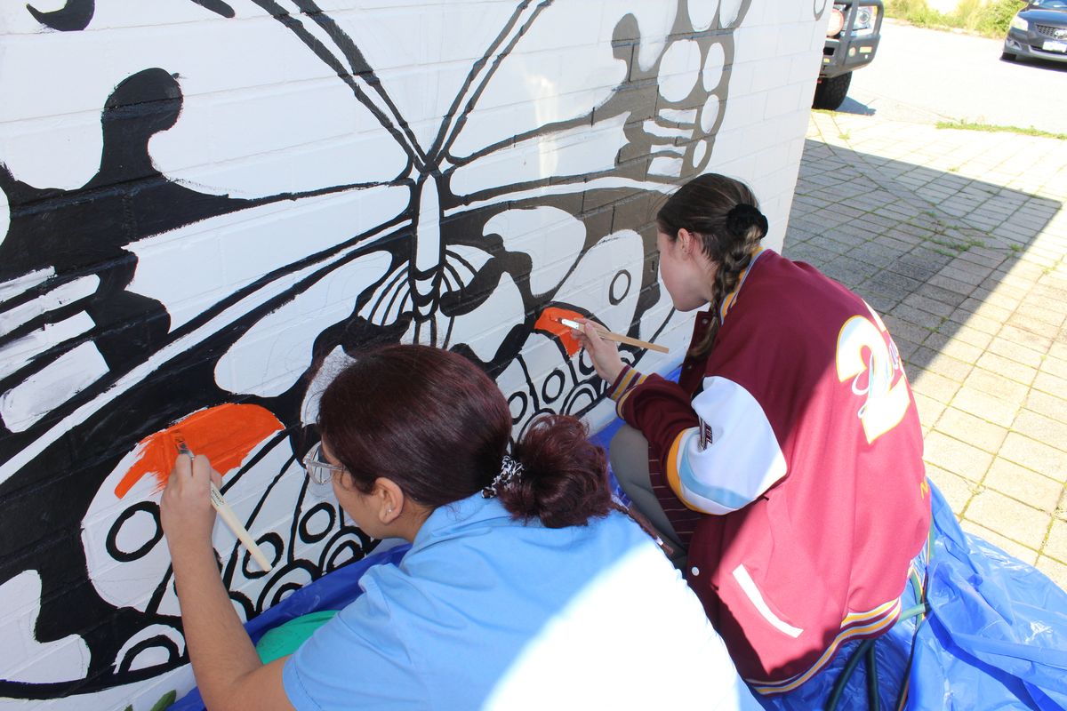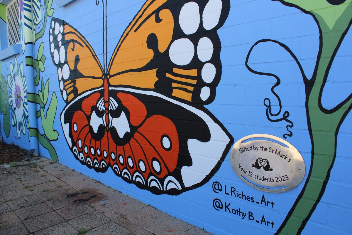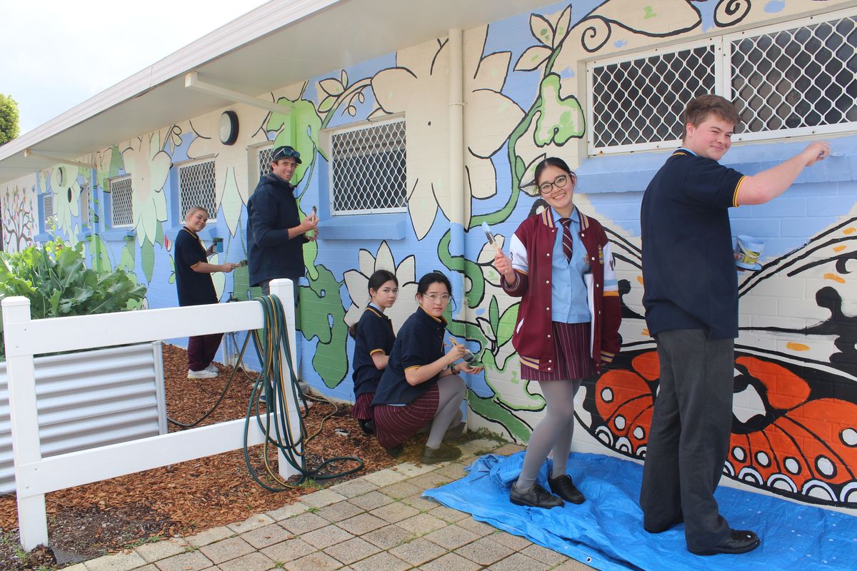 The colourful mural depicting an extension of the community garden with its passionfruit flowers, butterflies and ladybugs has been a true labour of love for our Year 12s. This project has been a learning experience and a platform for the students to leave a lasting mark on their community. Many students commented that they not only loved the opportunity to create something beautiful for our neighbours and give back to the community, but it also provided an outlet for them to escape the pressures of exams, study and class work.