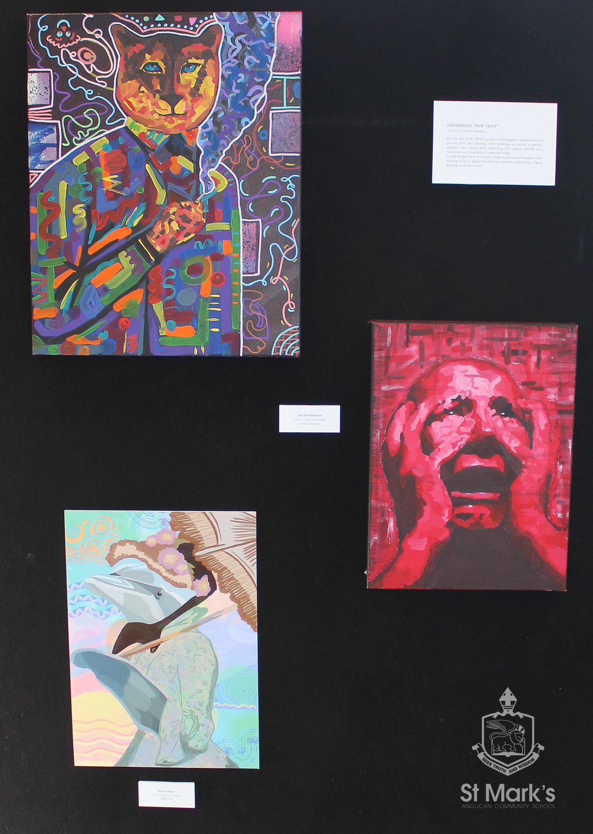 The St Mark's P&F, proud supporters of this event, presented awards to three outstanding Year 12 artists. Congratulations to this year’s winners: