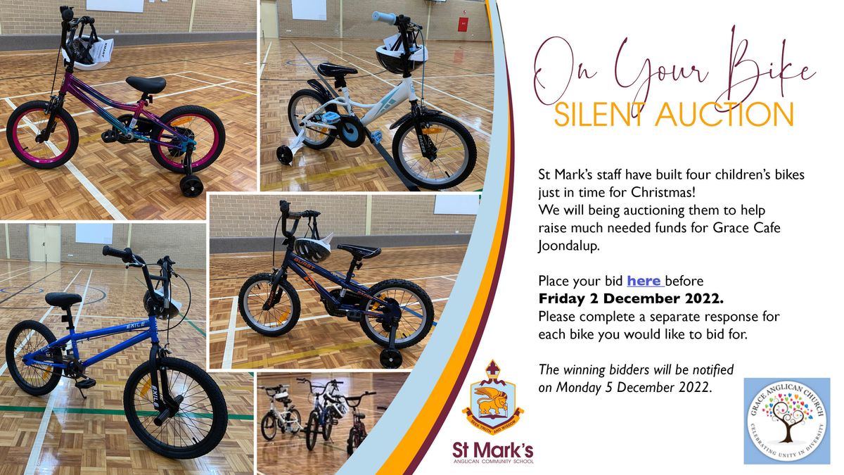 During the event, the group built four children's bikes, which are now being auctioned with a bike helmet by St Mark's. All proceeds from the auction will be donated to Grace Cafe.