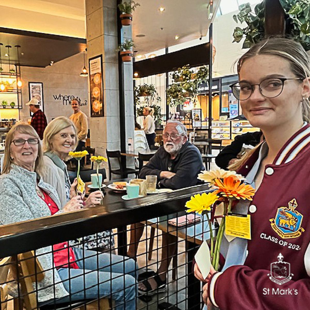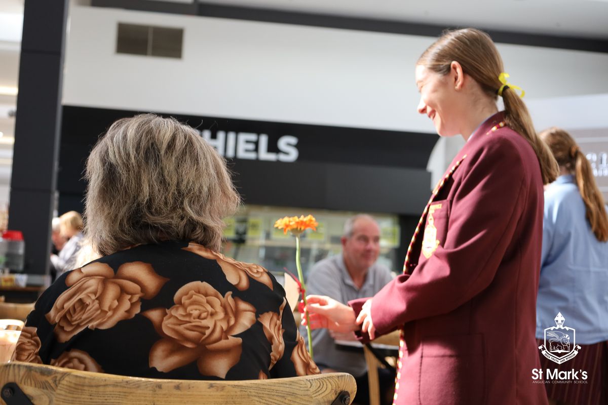 During the morning, Caitlin Collins, MLA, Member for Hillarys, teamed up with our Year 12 Prefects at Westfield Whitford City, where they handed out bright and cheerful gerberas to shoppers. It was a simple yet thoughtful gesture that helped remind everyone how small acts of kindness can spark meaningful conversations.