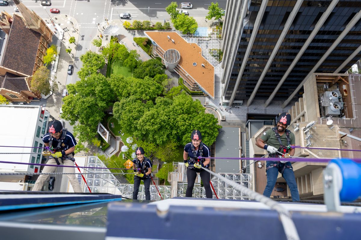 Alongside 52 brave fundraisers, they abseiled 130 metres down the side of Perth’s tallest building — not just for the thrill, but to make a real difference.