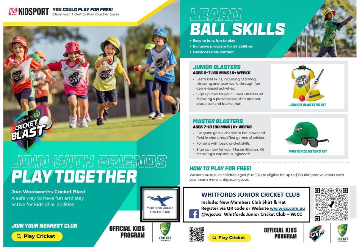 Registrations are now open for the Whitfords Junior Cricket Club Blasters program. See the below flyer for more information or head to their website HERE.