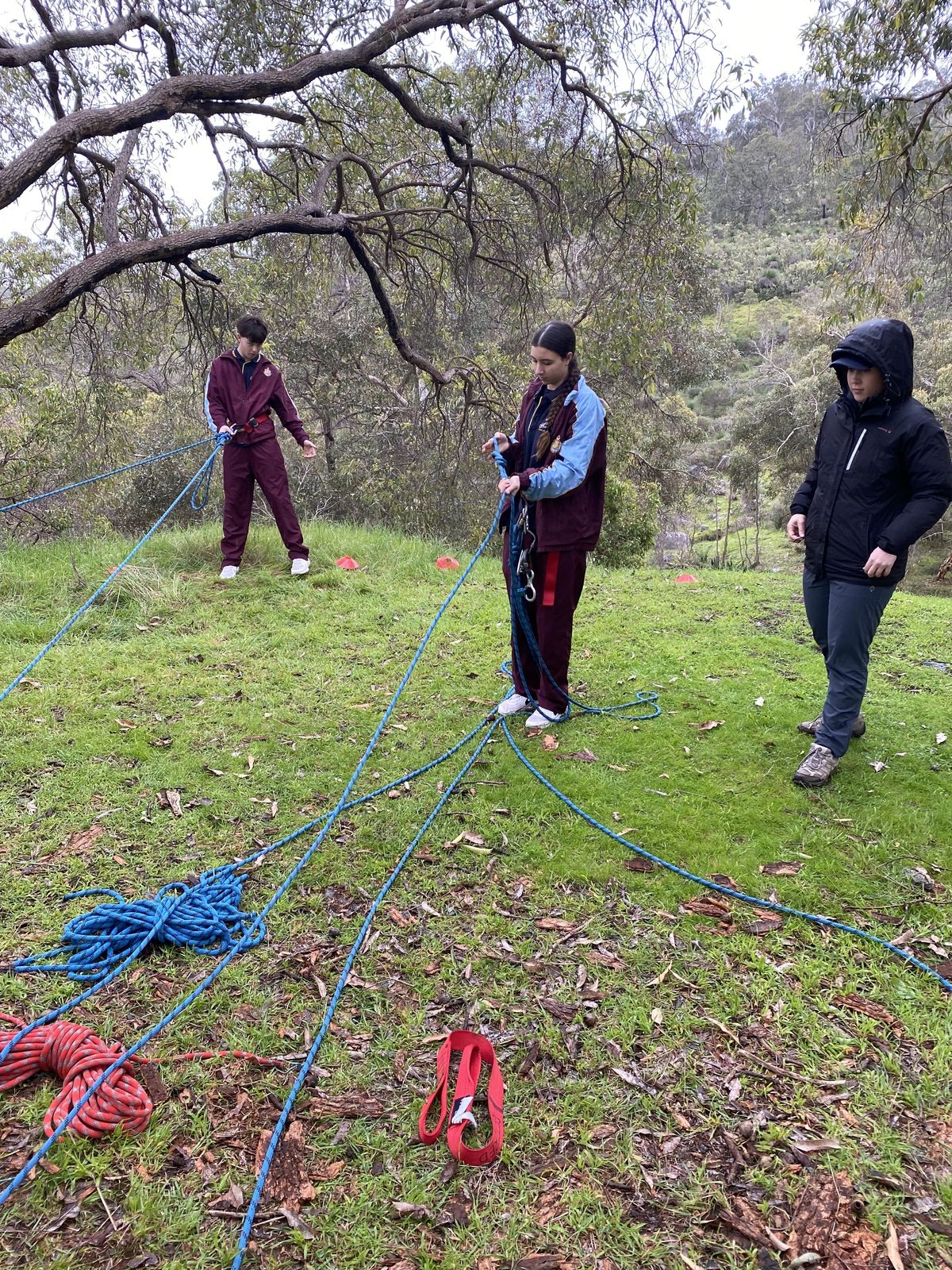 After a morning of abseiling, the students transitioned into the second phase of their adventure - demonstrating their proficiency in rigging a natural abseil site. This portion of the day was designed to foster a deeper understanding of the technical aspects of roping, ensuring that students not only experience the thrill of the activity but also acquire the skills necessary to ensure safety in such endeavours.