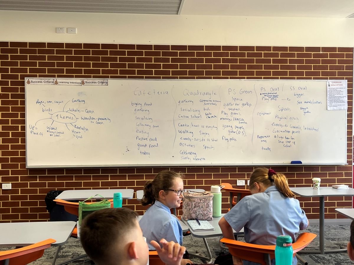The School campus has a number of important spaces that are used every day by our students and community. The School Council agreed to name these spaces with appropriate Noongar names that reflect the purpose of those spaces. The School engaged Moodjar to provide expert advice and support so that the process was a respectful one, ensuring that the richness of the knowledge and culture of Aboriginal people who have lived in this area for thousands of years were recognised and respected. Five spaces were examined: the Cafeteria, the Quadrangle, the green space in the Primary School between the Art Room and the Year 4/5 Building, the Primary Oval, and the Secondary Oval.