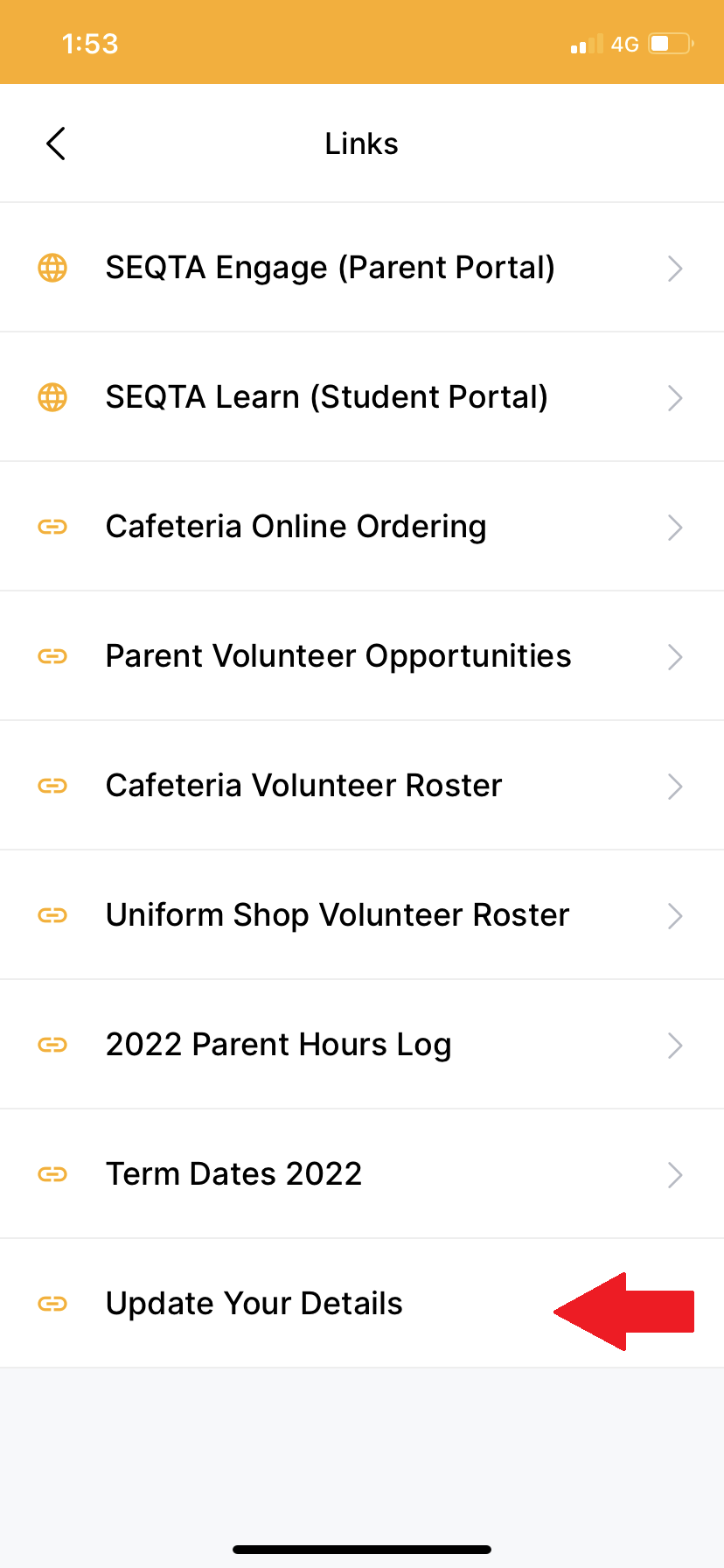 Links. This will open a new page with all the key links. Simply tap on the link titled Update Your Details and follow the prompts.