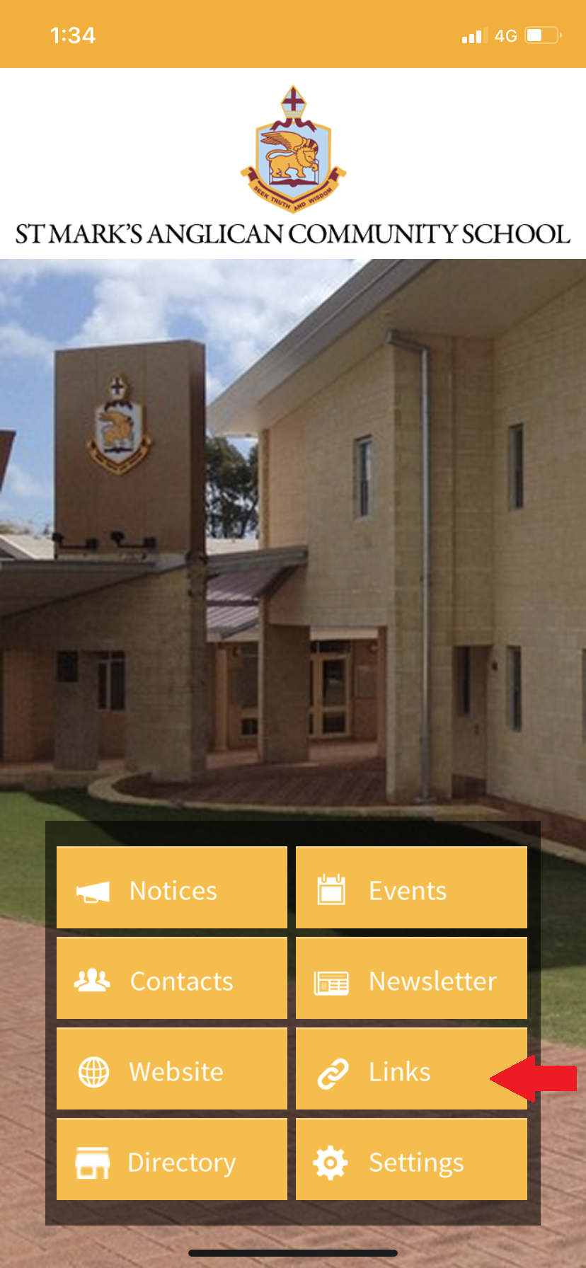 App: On the School App’s homepage, tap the button marked