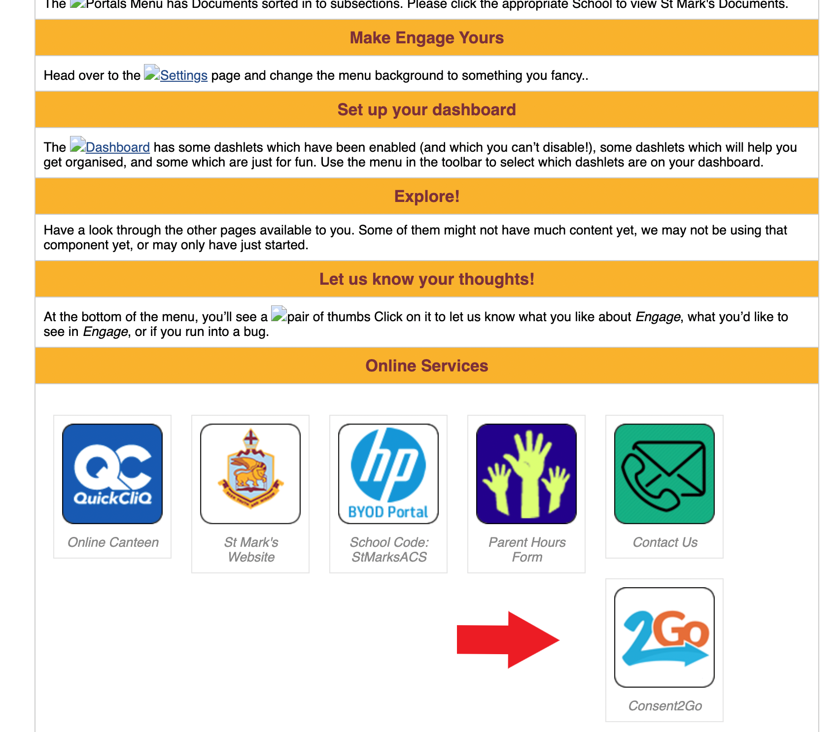 SEQTA Engage: Head to SEQTA Engage as you normally would. On the homepage click on the button marked Consent2Go and follow the prompts.