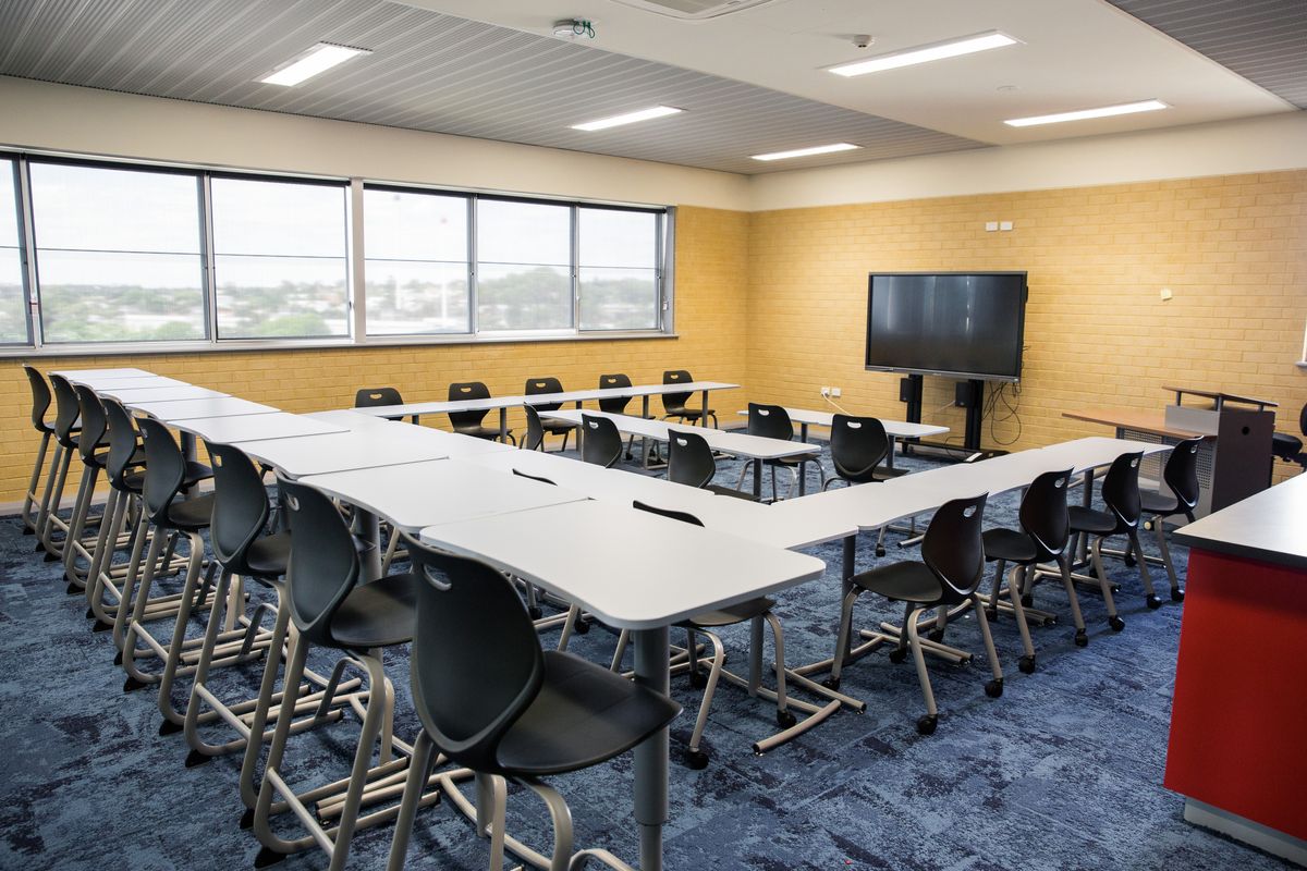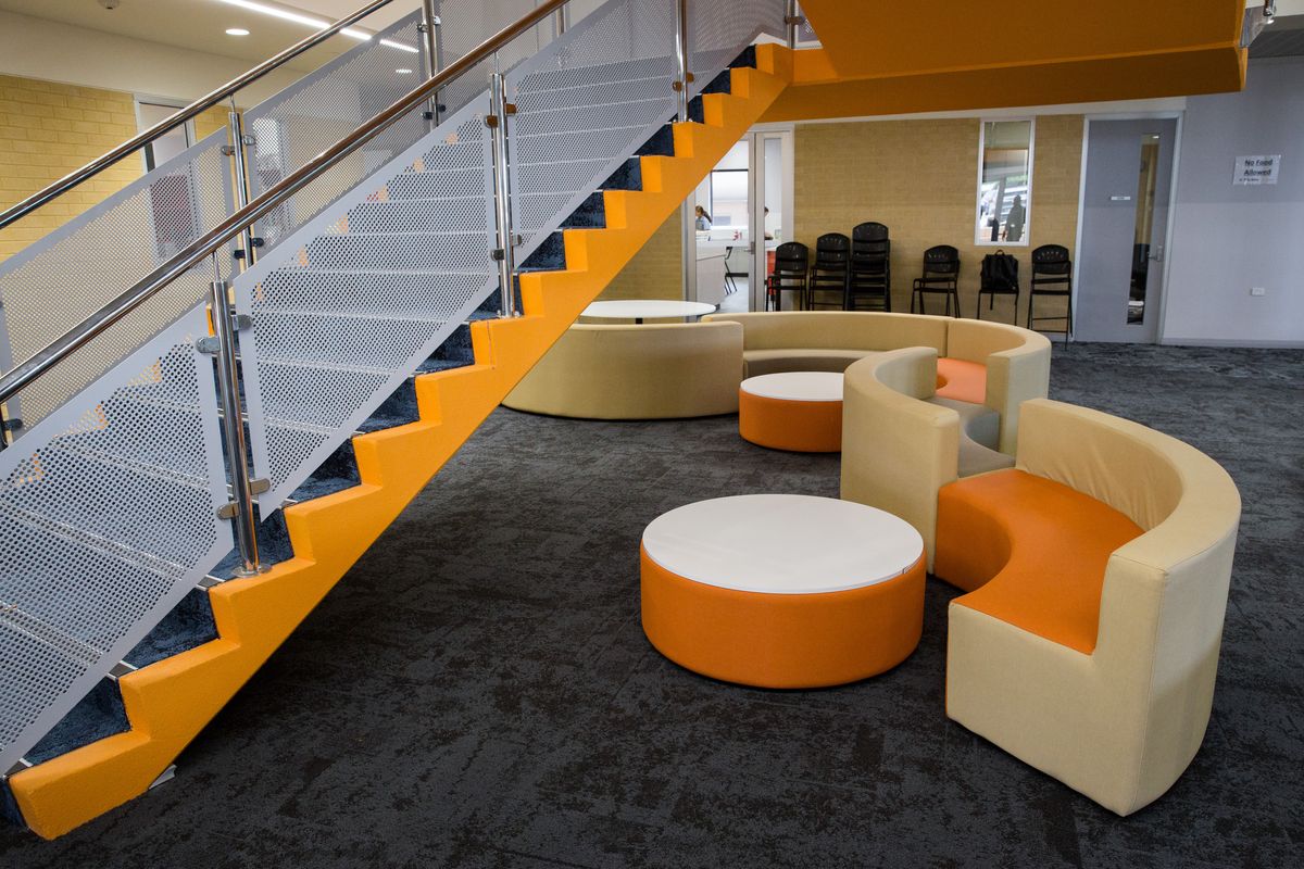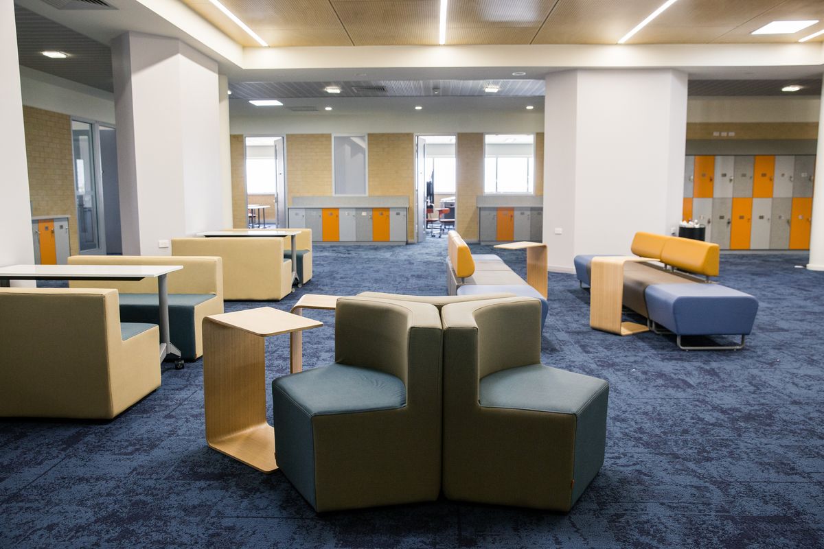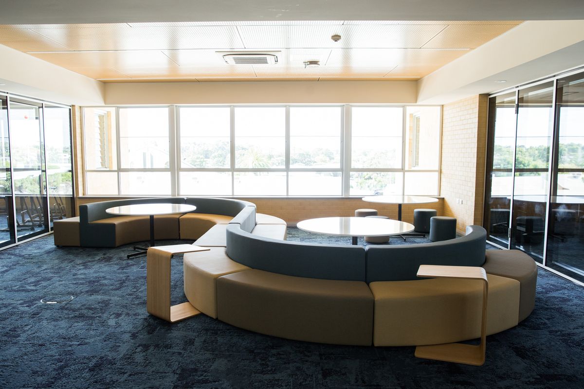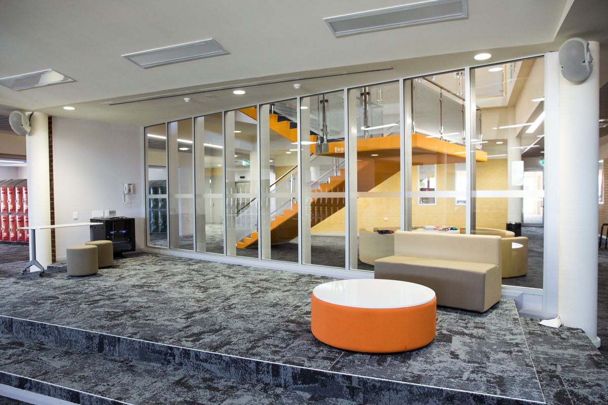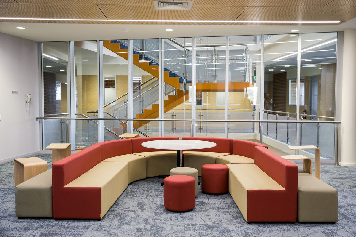 The three story Senior Academic Centre replaced some of St Mark’s oldest facilities. The modern, spacious interior design allows for flexible, glass enclosed learning areas, which gives teaching staff the ability to easily adapt the space to suit a variety of learning styles. Incorporation of modern student furniture allows for a variety of collaboration possibilities.